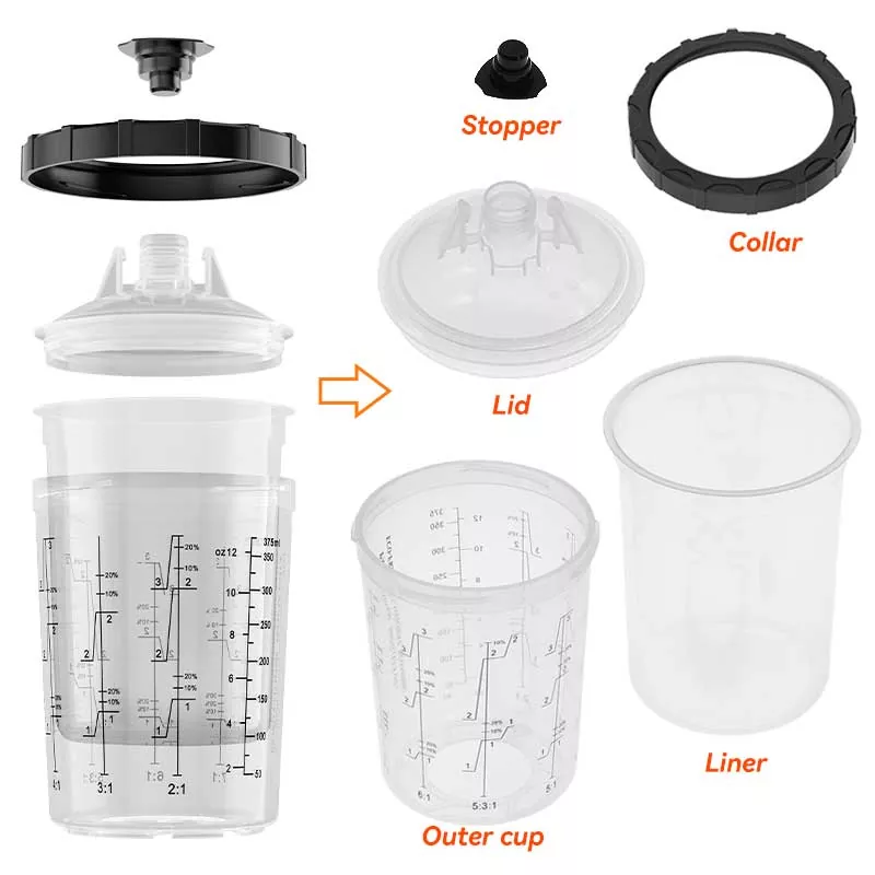 Jede Komponente desAYSPATDer 400-ml-Spritzpistolenbecher besteht aus den brandneuen Materialien PP und PE-Kunststoff. Wir verfügen über fortschrittliche Produktionsanlagen und ein einzigartiges Spritzgussverfahren, das es ermöglicht, dass jede Komponente zusammenarbeitet, um ein perfektes Produkt herzustellen.