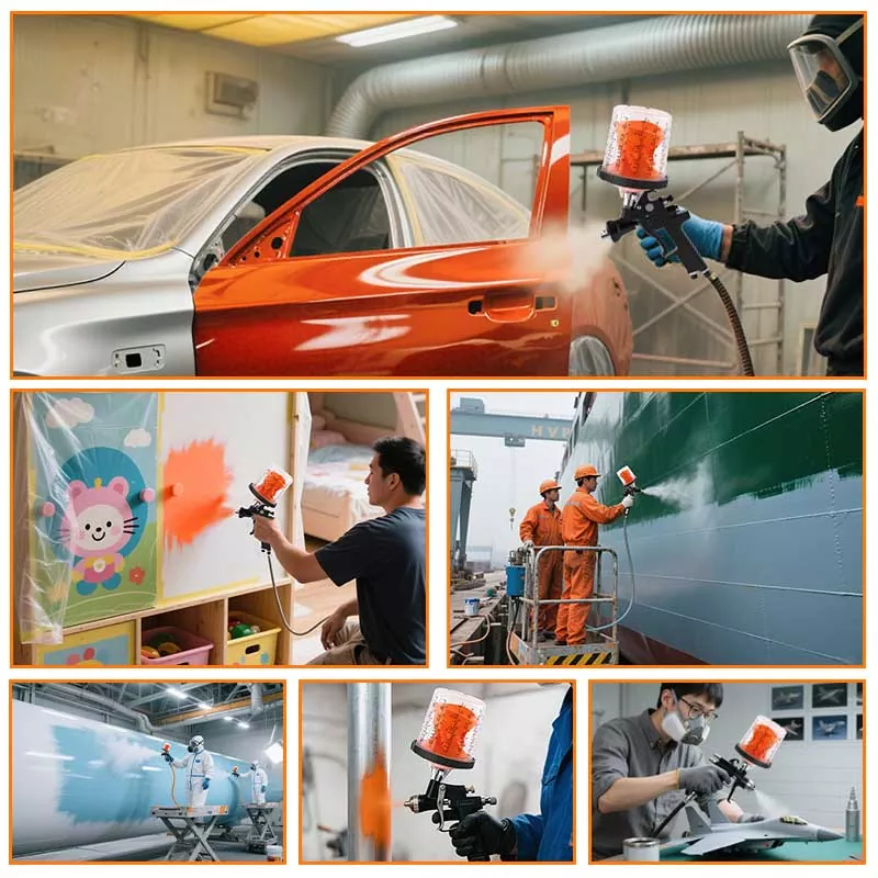 Das 400-ml-Einweg-Farbbechersystem 1.0 von AYSPAT verbessert die Malerarbeit und die Arbeitsumgebung des Malers: Die Wahrscheinlichkeit, dass er giftigen Autolacken ausgesetzt wird, ist geringer, was die Gesundheit des Malers schützt. Gleichzeitig erleichtert das 360-Grad-Sprühen die Lackierarbeit. Je nach Farbtyp empfehlen wir unterschiedliche Filter: 190-Mikrometer-Filternetz für ölbasierte Farben und 125-Mikrometer-Filternetz für wasserbasierte Farben. Ein grüner Deckel kann normalerweise verwendet werden, um 190 Mikrometer anzuzeigen, und ein transparenter Deckel kann 125 Mikrometer darstellen. Als professioneller Hersteller von Einweg-Farbbechern bietet Qingdao Aspaint je nach Mindestbestellmenge unterschiedliche Verpackungsmethoden und Transportlösungen an. Zusätzlich zu den AYSPAT 1.1-Produkten haben wir weitere Kategorien von Spritzpistolenbecherprodukten entwickelt. Gerne können Sie uns Muster und Angebote anfragen.