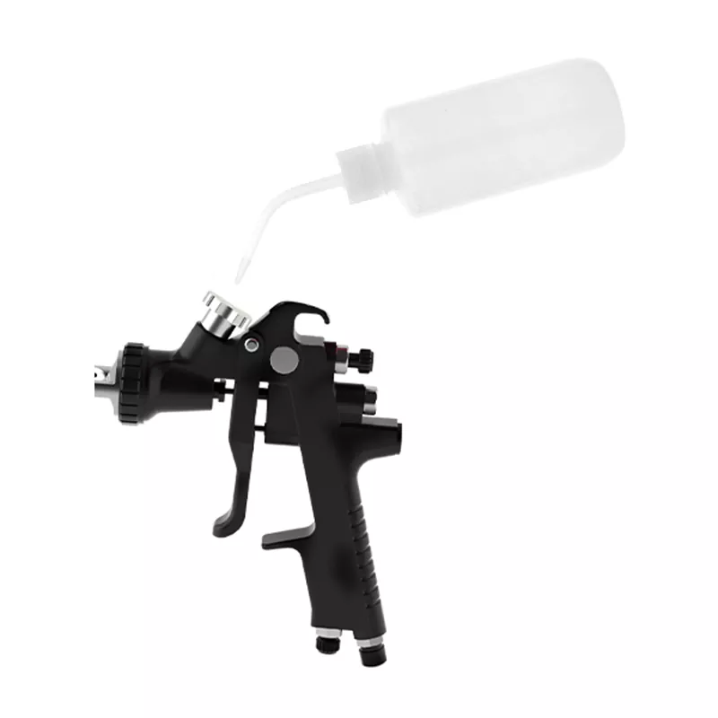 Die einzigartige gekrümmte Düse der Sprühpistolenreinigungsflasche kann die Restfarbe in den Lücken tief in der Sprühpistole schnell spülen, wodurch die durch die Lackierung verursachte Blockierung effektiv verhindern kann, die Lebensdauer der Sprühpistole verlängern und die Zeit minimiert, um die Sprühpistole zum Reinigen zu zerlegen.